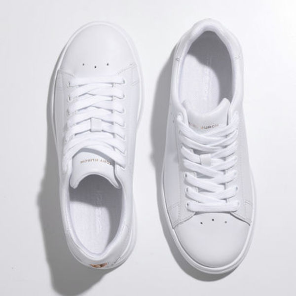 白のスニーカーにも上質なレザー素材を使用。人気のローカットスニーカーは、軽量なラバーソルで厚底ながら軽やかな履き心地に。サイドのトライアングルロゴがポイントになっています。