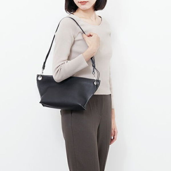 マザーズバッグや通勤用トートバッグが人気を集める「THE ALLY(アリー)」ですが、実は上品バッグも種類豊富!『リナショルダーバッグ』は、トレンド感のある横長フォルムでガシガシ入る収納力◎付属のポーチも付いているので、整理整頓もラクチンです。