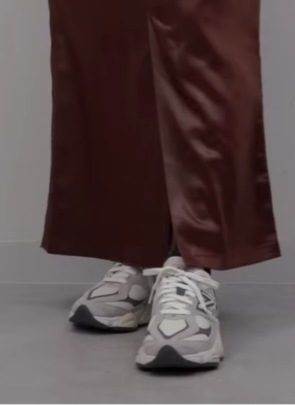 こちらはSNSでもよく見かけるNew Balance(ニューバランス)の9060。ダッドスニーカーのような見た目ですが、メッシュ素材ではないのでスポーティーになり過ぎず、淡めのくすみカラーできれいめコーデにもおすすめの一足。