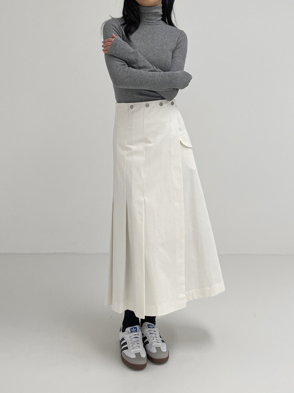 ロングスカートには、シンプルなホワイトやブラックのローカットまたはハイカットスニーカーがおすすめ。旬のハイテクスニーカーとも相性が良いですが、ゴツいデザインやマルチカラーはスポーティーに偏りやすいのできれいめが好きな方は慎重に選びましょう。