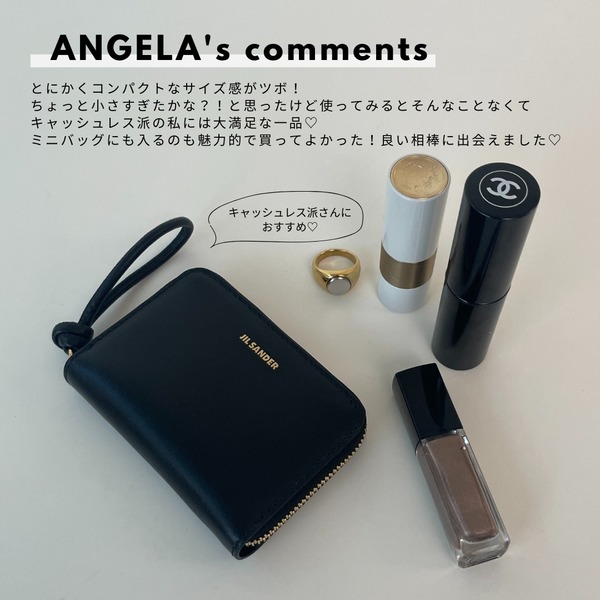 ANGELAさん的おすすめポイントは、ズバリコンパクトなサイズ感!キャッシュレスな決済がメインなら、不便を感じることもなく必要な現金・カードをスッポリまとめることができます。