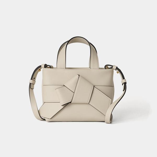 高級感がありながらもあくまでミニマルで抑えたシックなバッグが、老若男女問わず人気のアクネ。近年では甘くない大人女子のためのリボンバッグが可愛いと話題に。ここでは、着物の帯から着想を得たという上品でシックなMusubiシリーズを3型ご紹介します。