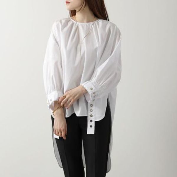 「S Max Mara(エス マックスマーラ)」は、実はデザイン性に富んだ白シャツの宝庫!デザインも、ヒップが隠れる丈だったり、身頃もゆったりしていたり、と気になる部分を上手にカバーしながらキレイに見せてくれるのが嬉しい。他には無いデザインが揃うから、毎シーズン見逃せないアイテムです。