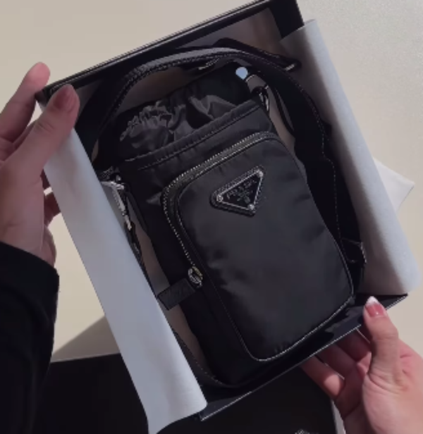大きいポケットにiPhoneが丁度入る大きさでした。ナイロン素材なのでとても軽いです。PRADAには他にも似たようなスマホケースがあるのですが、この商品は肩紐が1.5㎝と細くシンプルなので、こちらに決めました。期待どおりの素敵な商品でした。