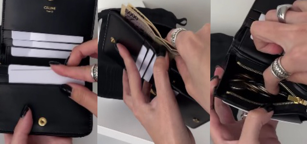 フランス生まれのラグジュアリーブランドCELINE(セリーヌ)の黒財布は、コンパクトな見た目ながらも充実の収納力。マチがあるため小銭やカードをたくさん入れても型崩れしたり膨らむこともなく、黒にしっかり映える象徴的な“トリオンフ”が洗練されたムードを漂わせてくれます。