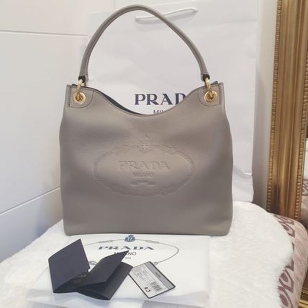 ハイブランドの王道としても愛され続けるPRADA(プラダ)。なめらかなレザートートバッグは、フロントに大きくブランドロゴがエンボス加工で施され、しっかりと存在感を発揮。ニュアンスカラーでモードな雰囲気も忘れません。
