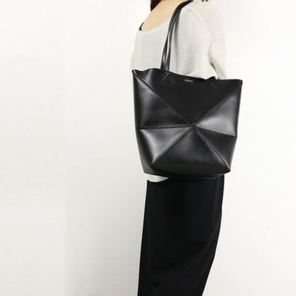 LOEWE(ロエベ)の『パズルフォルド』は、カーフスキンを使った上質でなめらかなレザートートバッグ。幾何学なラインが入っており、コンパクトに折りたたむこともできるため旅先のお供にも最適です。