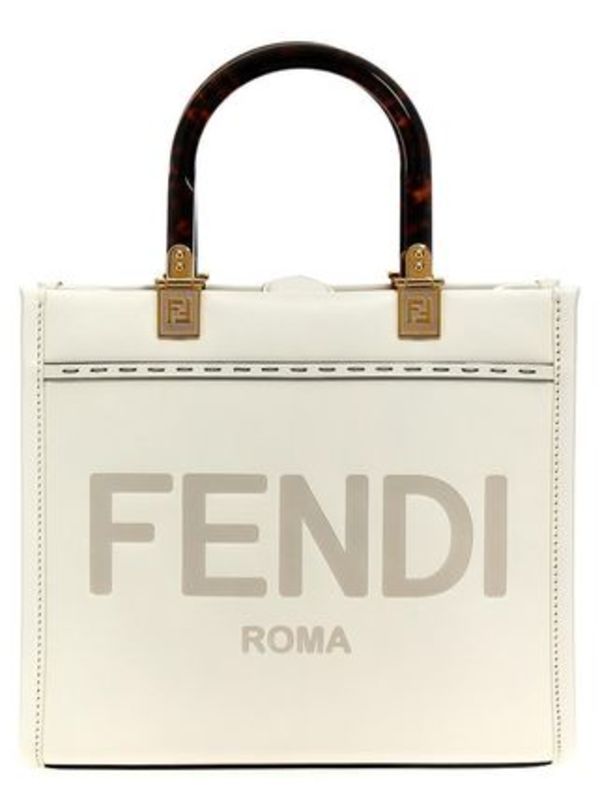 FENDI(フェンディ)のレザートートバッグは、シャープなスクエアフォルムに大きなブランドロゴが特徴的。硬いべっ甲柄のハンドルがアクセントになり、大人っぽく落ち着いた雰囲気を醸し出します。