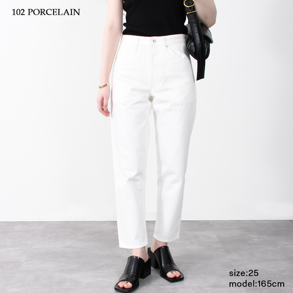 ゆるすぎないシルエットがきれいなデニムパンツ。ホワイトデニムはどんなトップスを合わせても爽やかな印象を保てる万能アイテムです。