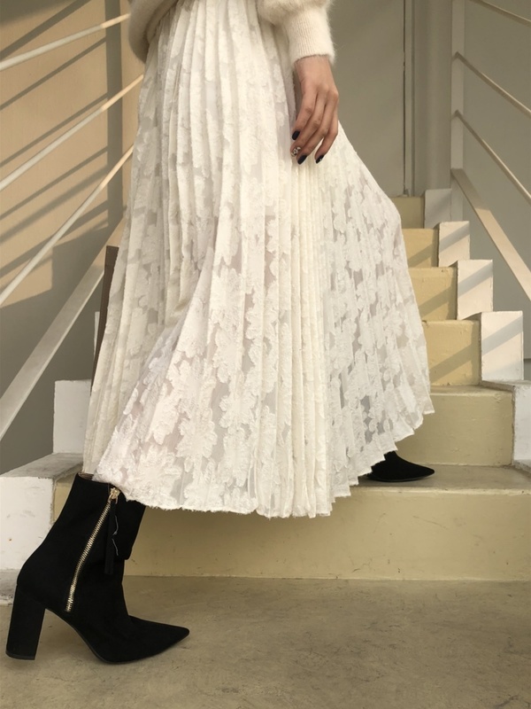 程良い肌見せを楽しむ♡レースプリーツスカート