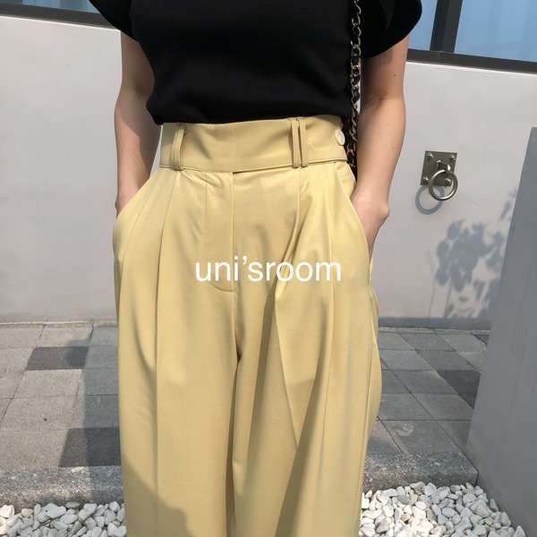 ゆったりしつつもきれいめな印象のワイドパンツ。ボトムスをイエローにするだけで一気に華やかコーデに!