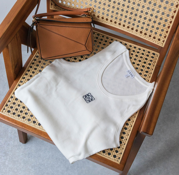 ∟大人の落ち着いた雰囲気を醸し出す「LOEWE(ロエベ)」のタンクトップ。ブランドロゴ同等の存在感を放つアナグラムモチーフがあしらわれたデザインが多く、サラッと1枚で着るだけで優雅なコーデにキマります!