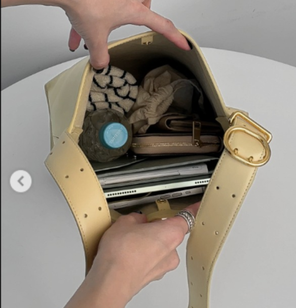 毎日持ち歩くアイテムがしっかりと入るサイズ感でありながら、大きすぎないのでオシャレな印象♪