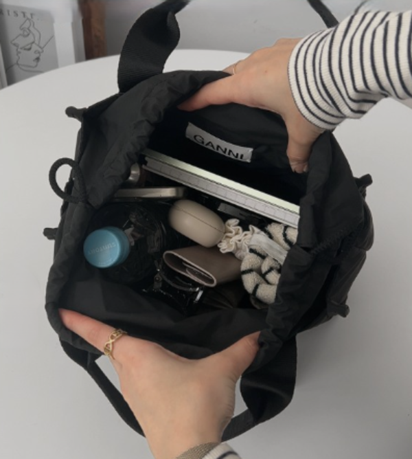 バッグの開閉口は、巾着のように絞るデザインとなっているので中身が見えず安心です♪