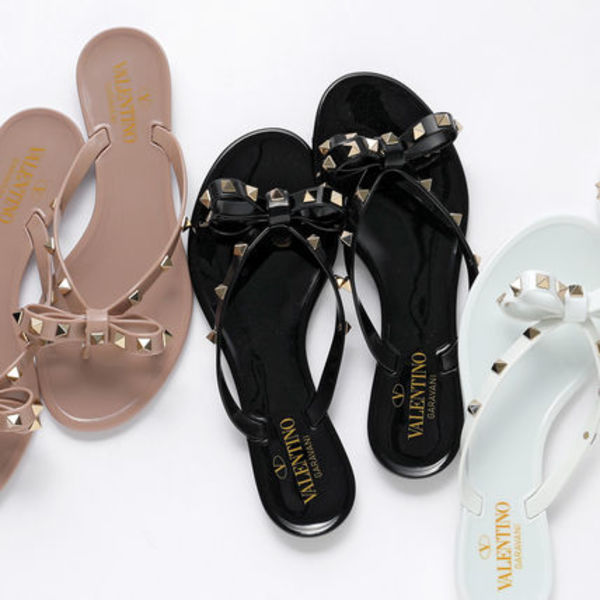 可愛さとエレガントさ、そしてちょっとだけエッジの効いたデザインが得意な「VALENTINO(ヴァレンティノ)」。定番人気のロックスタッズの付いたサンダルは、リボンの付いたPVC素材のものに注目。ビーチサンダル感覚で気軽に履けるから、この夏、エレガント派に是非オススメしたい一足です。