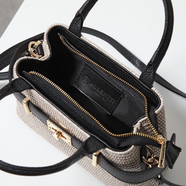 クラシックなレザーフラップのラタンハンドバッグ。ミニサイズなモデルながら、開けるとマチがあり適度な収納力も魅力的なバッグです。