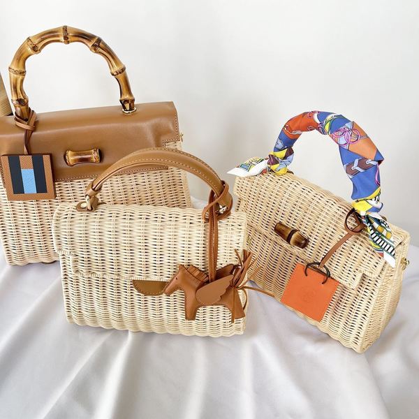 伝統的なバスケットバッグ。クラシックな手織りのボディと美しいカーフスキンのトップハンドルで格上げされたリッチなアイテムです。