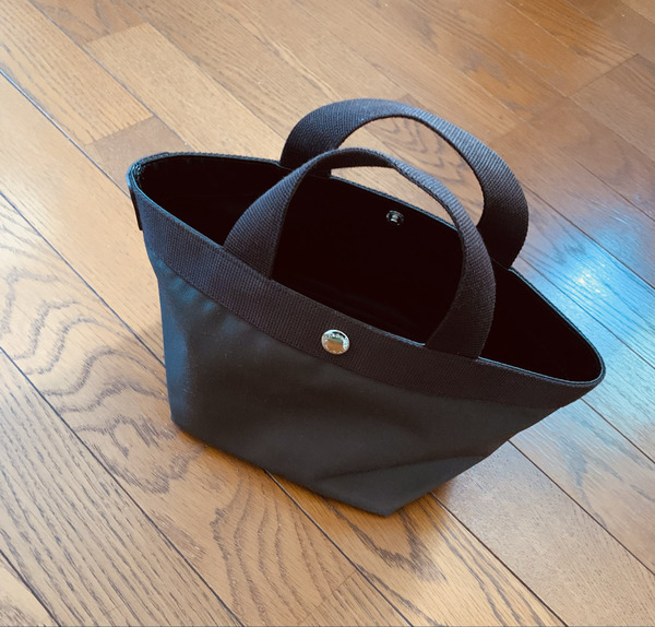 ママのデイリーバッグとして使っている方も多いエルベシャプリエの定番でもある舟形のトートバッグ。正方形のマチでかなりゆとりがあり、水筒やポーチなどかなり荷物が入るところが人気の理由に。