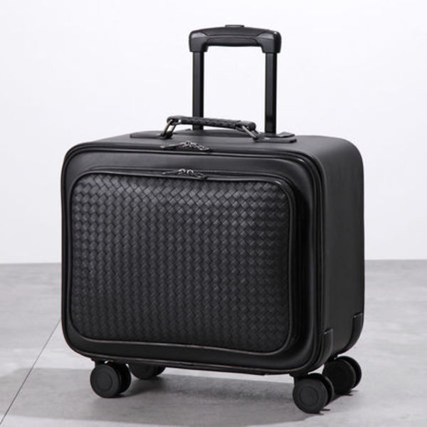 ∟アイコニックなイントレチャートレザーデザインのキャリーケースが素敵なBOTTEGA VENETA(ボッテガヴェネタ)。前開きタイプのスーツケースはサッと荷物を取り出せて、身軽に快適な旅をおくりたい1~2泊に最適です!