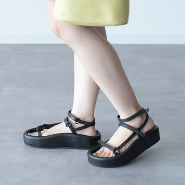 最後はMM6 Maison Margiela(エムエムシックス)から変わり種をピックアップ。主流のプラットフォームサンダルはやや重く見えがちですが、細めのストラップを採用することで抜け感を演出することができます。