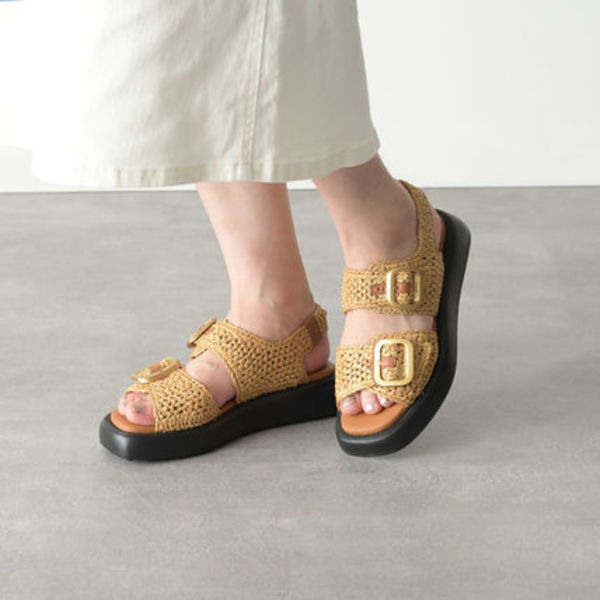 大人女子の新たな定番ブランドとなったTOD'S(トッズ)。こちらのプラットフォームオープントゥサンダルは、堅実なルックスと大きめのバックルがポイントです。ラフィア素材のアッパーがリゾートムードも◎。