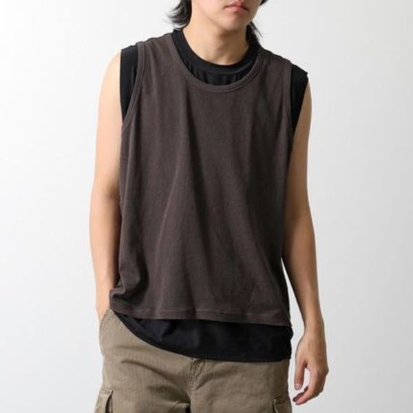 このようにレイヤードタイプのタンクトップもかなり多いです。メリットとしては「一枚でも寂しくない、涼しさはキープしつつお洒落感UP」など良い事づくし。アンサンブルとして販売しているものもあれば、別々のタンクトップを組み合わせるもありです。