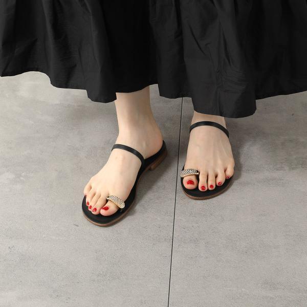 サムリングが際立ち、足元アクセサリーな気分で履ける「ナローストラップサンダル」。どのシューズを合わせるか迷ったときにこそ試してみてもらいたいほど万能なので、一足持っておくと便利です!