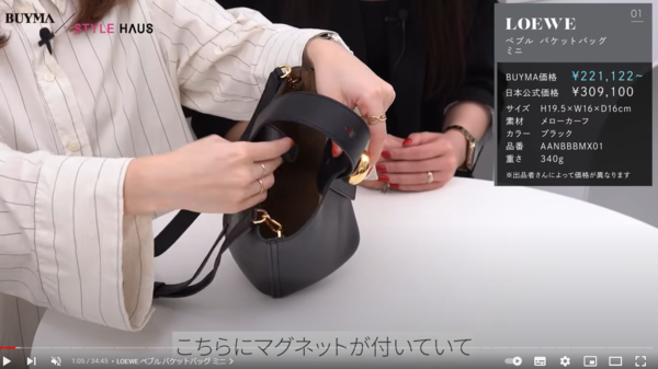 8つのマグネットがついており、ショッパーバッグからバケットバッグへの革新的な変形を可能に。折り紙のように折りたためるのです!肩にかけられる長めに設計されたハンドルなど、細部まで気が利いています。