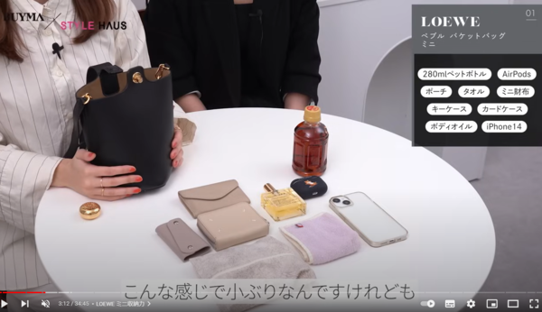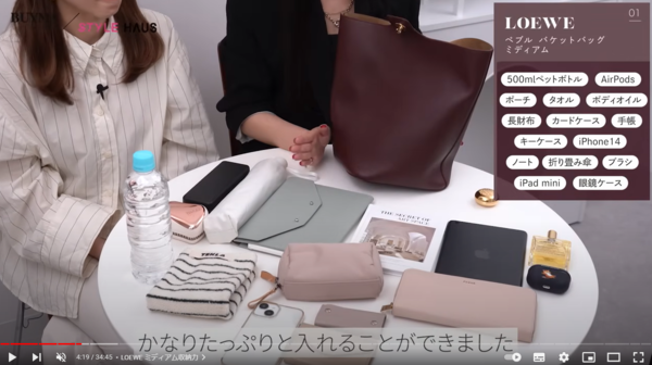 小ぶりながらもバゲットタイプのため、必要なアイテム+アルファの収納力があります。必要最小限以上入るので、ミニバッグを持ちたいけどちょっと荷物多めなんだよねって、方にもぴったりなバッグです。ちなみに長財布や500mlのペットボトルは若干はみ出してしまうほどで、許容ならば収納可能です。