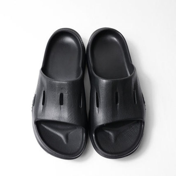 スライドサンダルの魅力といえば、その手軽さ。かかとのストラップが無いので脱いだり履いたりが凄く楽で、そして夏っぽく涼しげなイメージとなります。