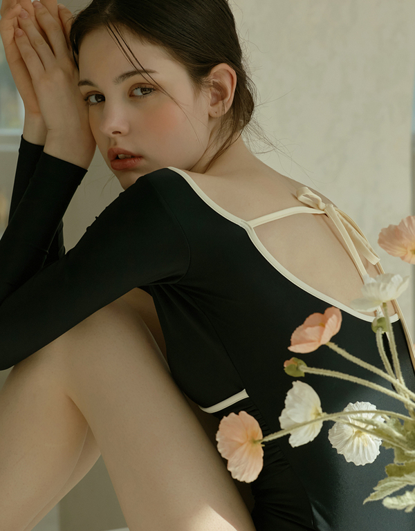 長袖タイプはレトロ可愛いデザインが今年らしいうえに、気になる二の腕のカバーも出来る一石二鳥な水着。紫外線対策にも◎