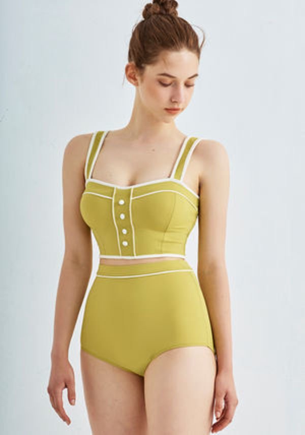 ハイウエストなボトムのビキニなら、出やすい下っ腹をスッポリ覆えて体型カバーに最適!ウエストの位置が高く見えるため、スッキリ脚長なシルエットも実現します。シンプルなデザインなら、大人女子もチャレンジしやすいですよ。
