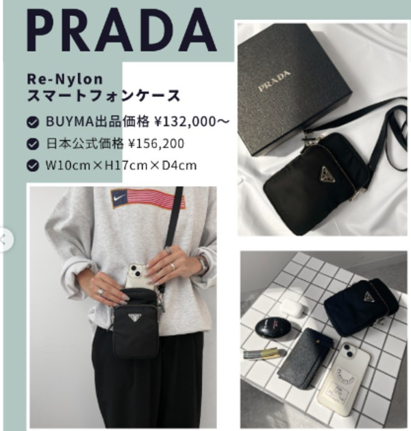 大きいポケットにiPhoneが丁度入る大きさでした。ナイロン素材なのでとても軽いです。PRADAには他にも似たようなスマホケースがあるのですが、この商品は肩紐が1.5㎝と細くシンプルなので、こちらに決めました。期待どおりの素敵な商品でした。