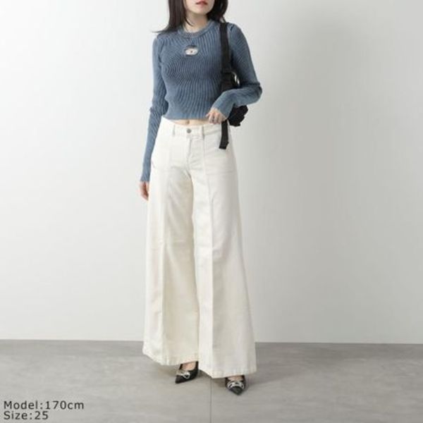 爽やかなホワイトカラーと大きく広がるシルエットが特徴のフレアデニム。縦のラインを強調するセンタープレス入りで脚をより長く、美しく魅せてくれるアイテム!白デニムだと下半身が膨張しがちと敬遠していた方におすすめしたい革命的な1本です◎
