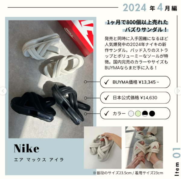 おしゃれさんから熱視線が注がれているNike(ナイキ)の厚底サンダル「AIR MAX ISLA(エアマックスアイラ)」は、幅広い着こなしに合わせやすいだけでなくスタイルアップ効果も抜群。一日中アクティブに動き回っても疲れ知らずな優等生です。