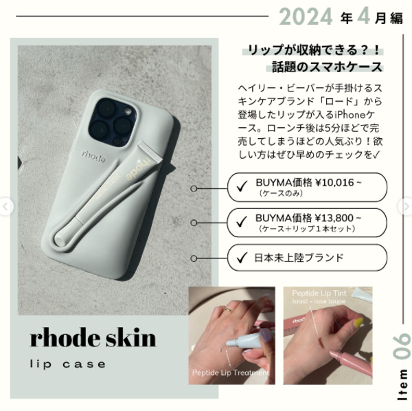 美容感度の高いHailey Bieber(ヘイリー・ビーバー)が立ち上げ、新製品がお目見えするたびに大きな話題を呼んでいるビューティーブランドrhode skin(ロード)。アイキャッチなスマホケースは手触り柔らかなシリコン素材で、スタンダードな色に加えて鮮やかな4色が追加となりましたのでぜひお見逃しなく。