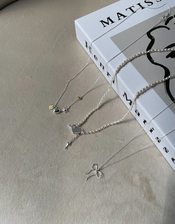 SNSでも人気を集めているのがパールをあしらったこちらのネックレス。ハートの穴に通して留めるトグルタイプで、どの角度から見てもキュート♡甘すぎないので、カジュアルなコーデにも取り入れやすいです。
