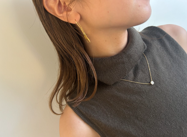 プレッツェルみたいな形をしたハートモチーフが大人可愛いピアス・イヤリング。かなり小ぶりなので、さりげなく取り入れたいという方にもおすすめです。ゴールドとシルバーの2色展開で、どちらも上品さは抜群!