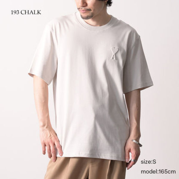 パリジャンのような気品漂うTシャツコーデが叶うAMI PARIS(アミ パリス)。ハートがモチーフのブランドロゴがアイコンとなっています。赤の刺繍は可愛すぎるという方は、エンボス加工でさりげなく取り入れるのがおすすめ!
