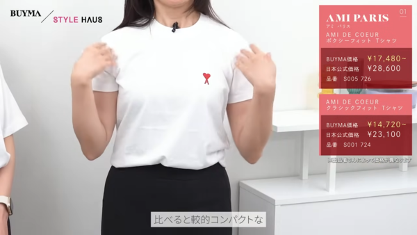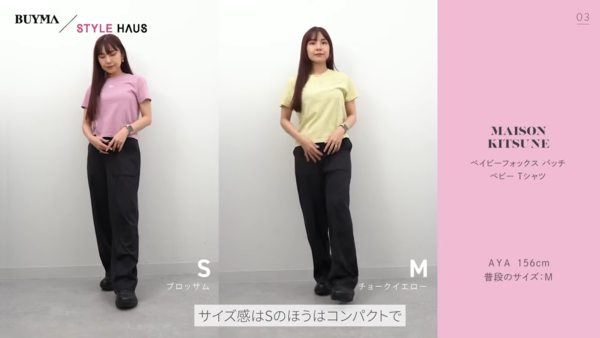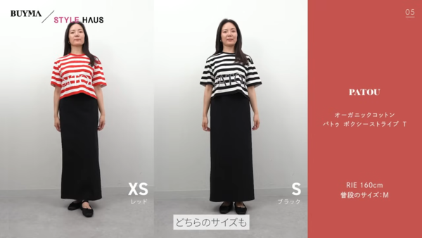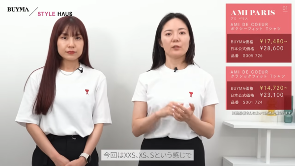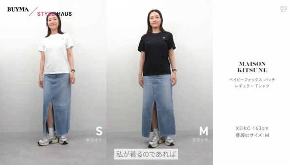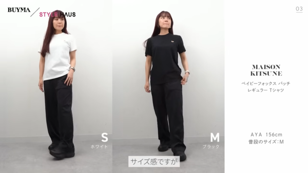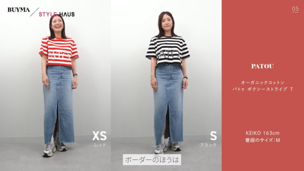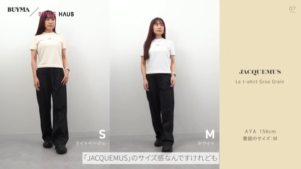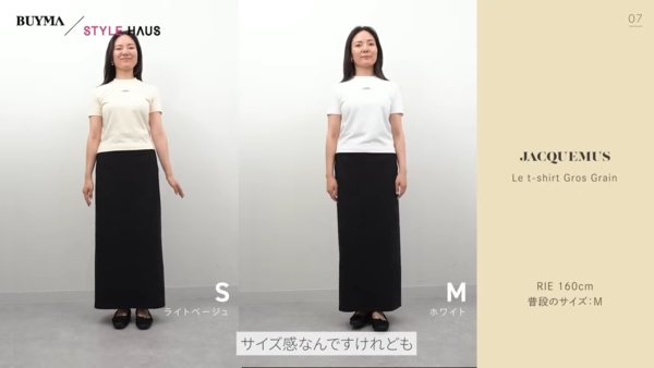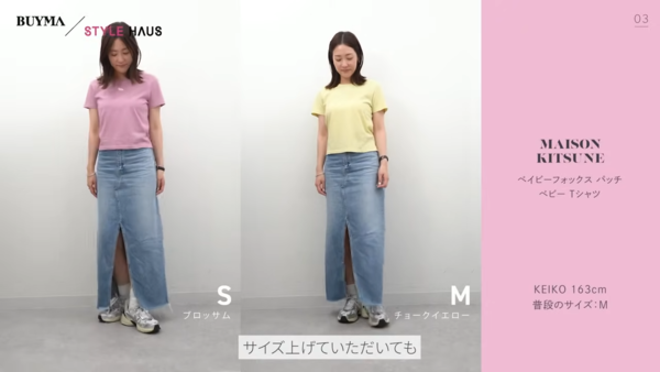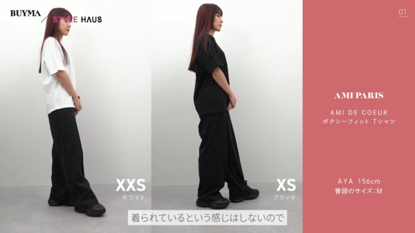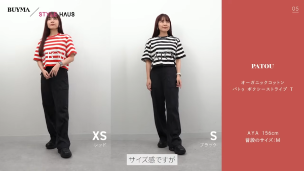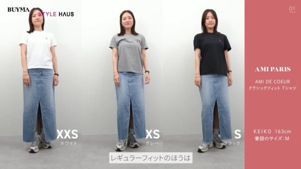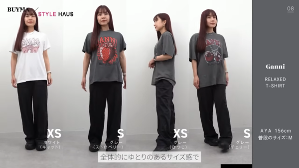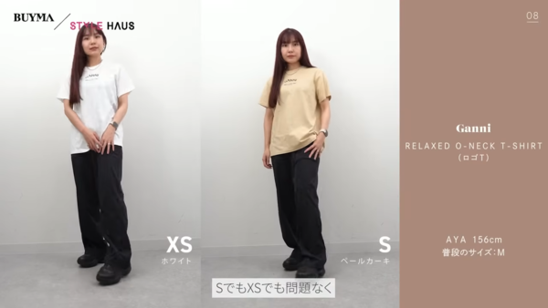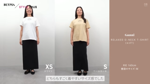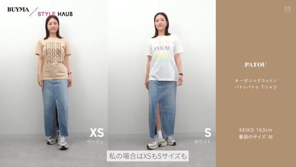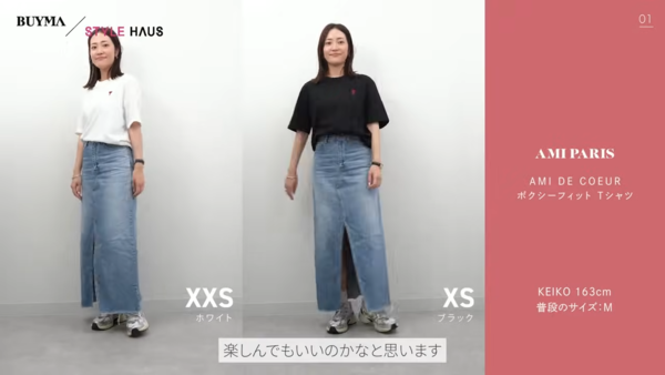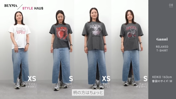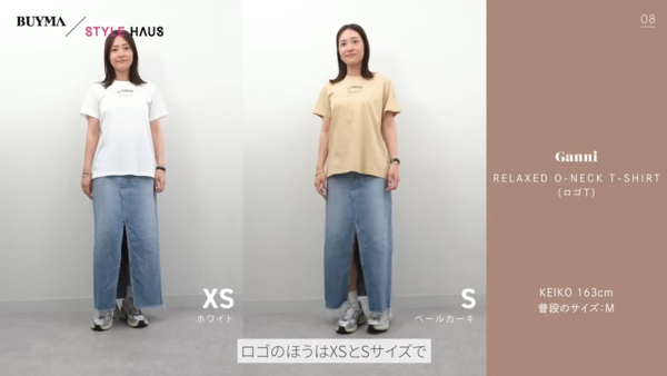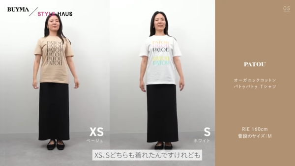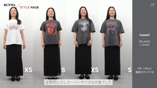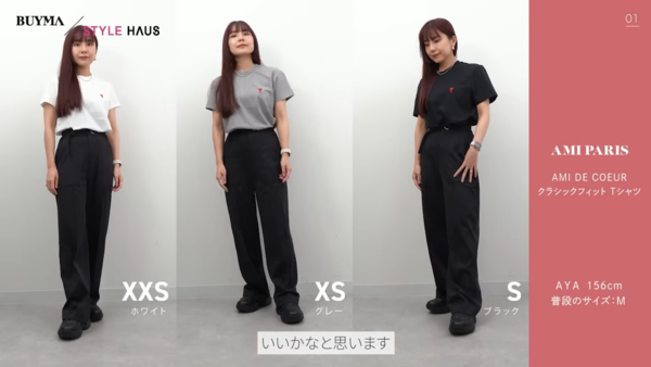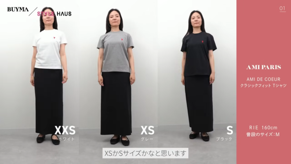 公式サイトでは、女性がユニセックスTシャツを着る場合ワンサイズ下げるのが良いと推奨されています。しかし、実際BUYMA(バイマ)のレビューでは、ワンサイズ下でも大きすぎるという声も……。そこで今回は、XXS、XS、Sサイズを比べてみました!
