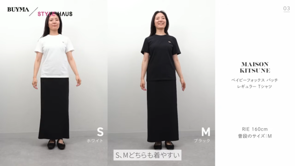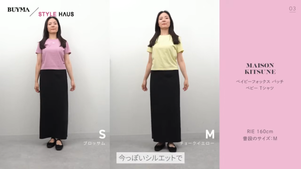 きれいめデザインで普段Tシャツをあまり着ない方にもおすすめ。今回は、SとMサイズを着比べてみました。