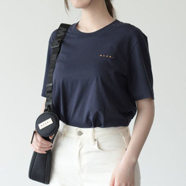大胆で派手なイメージが強いMARNI(マルニ)ですが、ブランド感を主張しないきれいめTシャツも◎ベースの色によってロゴの配色が異なるのがポイントです。大人っぽくお揃いにするなら、色違いでさらにさりげなさを引き立てましょう。