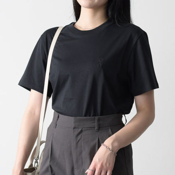 AMI PARIS(アミ パリス)は、ハートをあしらったブランドのアイコンロゴがトレードマーク♡大人カップルは、トーンオントーン刺繍であしらわれたコットンジャージーTシャツがおすすめ。ロゴがさりげないので、きれいめにもカジュアルにも相性抜群です。