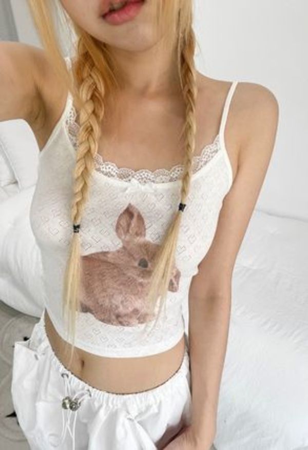 Acubi Club(アクビクラブ)は、ヴィンテージなハイティーン感性を感じられる韓国発祥のブランド。旬のレースキャミには、うさぎのプリントが施されインパクト抜群!夏は1枚で着て、秋はジャケットを合わせてハイセンスに周りと差を付けましょう。