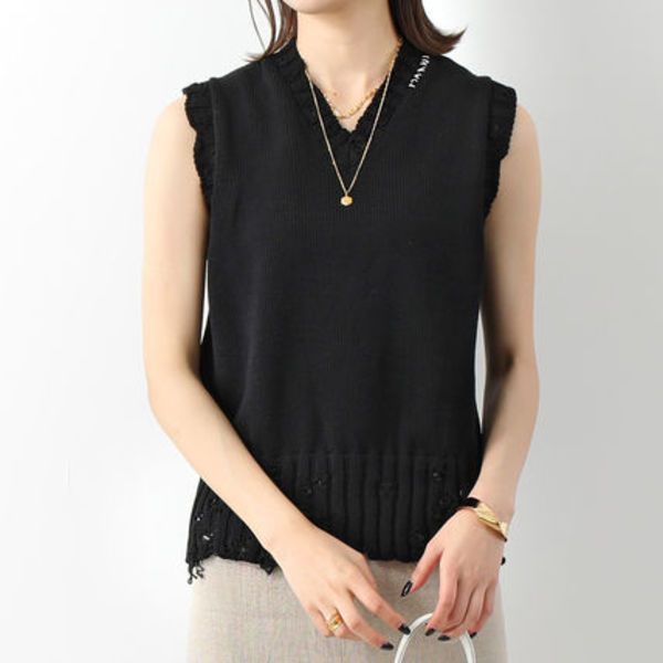 MARNI(マルニ)のニットベストは、コットン素材を使っているので夏でも快適♡1枚で着るのはもちろん、秋になれば、Tシャツやシースルートップスなどを合わせてレイヤードコーデを楽しめます。サイドのさりげないブランドの刺繍がアクセント!!