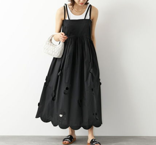 イタリア生まれのファッションブランドMeiMeiJ(メイメイジェイ)のキャミワンピースは、お花のカッティングや裾のデザインが可愛らしい印象。タンクトップやサンダルを合わせればリゾート感を楽しむことができ、秋口にはお手持ちのインナーに重ねたりカーディガンを羽織ったりと着回し力も抜群です。