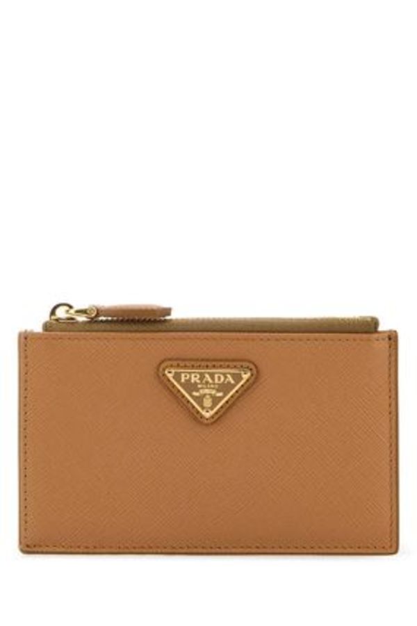 サフィアーノレザーを使ったトライアングルロゴの定番財布。今季は、爽やかなキャメルカラーが登場し、フェミニン派さんも持ちやすい上品な印象に仕上がっています。三つ折りのコンパクトなサイズ感なので、ミニバッグとも好相性◎