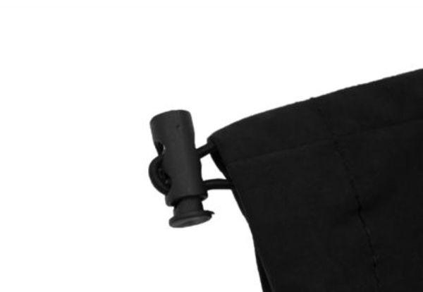 どんなにボトムスがワイドであっても下記写真のように裾下にサイズ調整が可能なドローコードが付いていれば裾を絞ることができるので、カンタンに裾を拾うことが可能です。