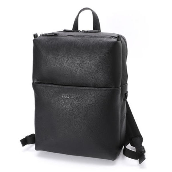 大人の色気が漂うFERRAGAMO(フェラガモ)のビジネスリュック♡スクエアフォルムで、型押しレザーが高級感を演出。ブランドロゴがさりげないのもポイントです。