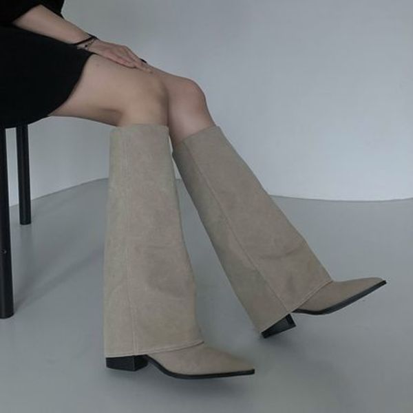 Y2Kブームが続いている2024年、筒まわりがゆったりとしたロングブーツが大ブームに。足が細く長くみえるため、ミニ丈のボトムスと合わせてとことんスタイルアップを狙いましょう。今年は写真のようなレイヤード風のデザインが◎